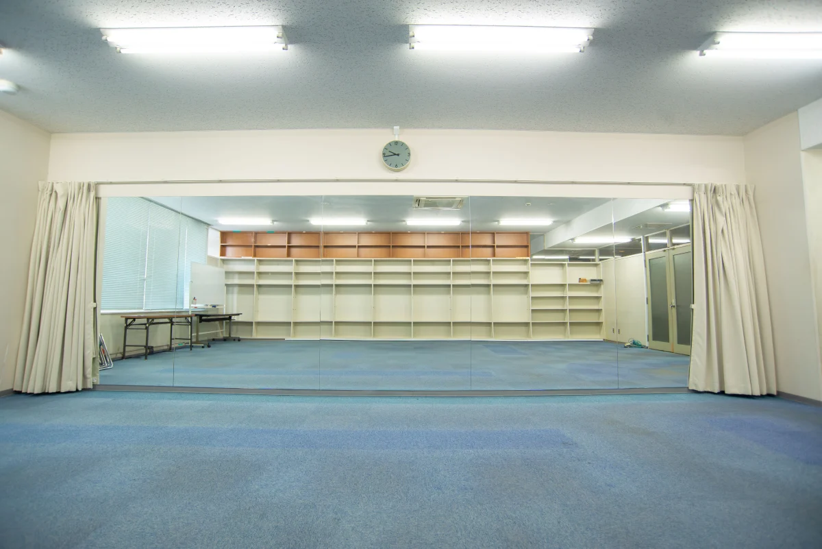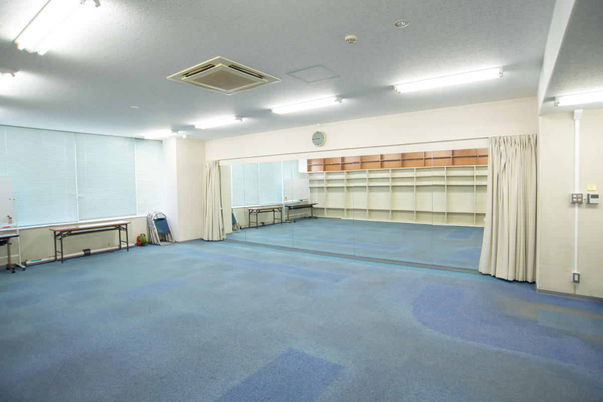 | 設備 | 長鏡、長机、一人用机、パイプ椅子、ホワイトボード、スクリーン |